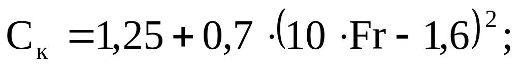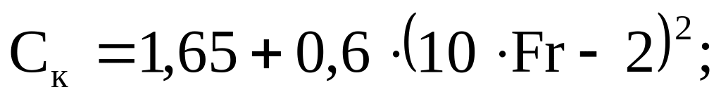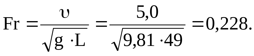 Число Фруда для расчетной скорости движения к = 18,0 км/час = 5,0 м/с равно