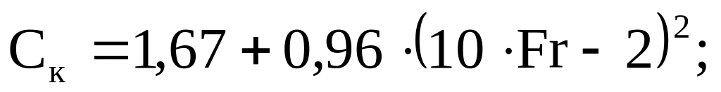 Расчет ординат кривой буксировочного сопротивления судна R = f () производим, задаваясь числом Фруда для нескольких значений . Результаты расчетов приведены в табл. 1.