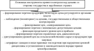 Автором Ефимовской Л.А., на основе обобщения опыта некоторых стран Евросоюза (Франции, Испании, Дании, Швеции, Финляндии, Германии), Америки, Швейцарии, Японии, Китая выделены следующие основные инструменты прямого контроля над ценами со стороны государства, представленные на рисунке 1.