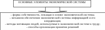 Экономическая система – это законы и правила, институты, оценки, традиции, организации, позиции, убеждения, схемы поведения и запреты, оказывающие прямое или косвенное воздействие на экономические результаты. Основные элементы экономической системы представлены на рисунке 2.