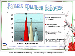 Подготовка страницы «Сведения о размахе крыльев бабочек» (рис.8).