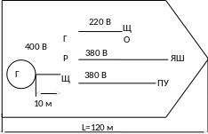 Длина участков кабельной сети зависит от взаимного расположения источников и потребителей. На рис. 2.1 показано их расположение на судне-прототипе.