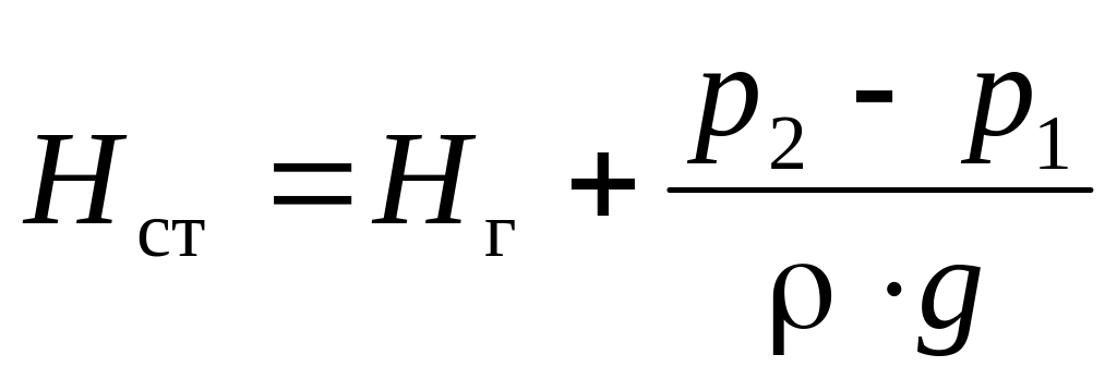Первые два слагаемых формулы (7) не зависят от расхода. Их сумма называется статическим напором: