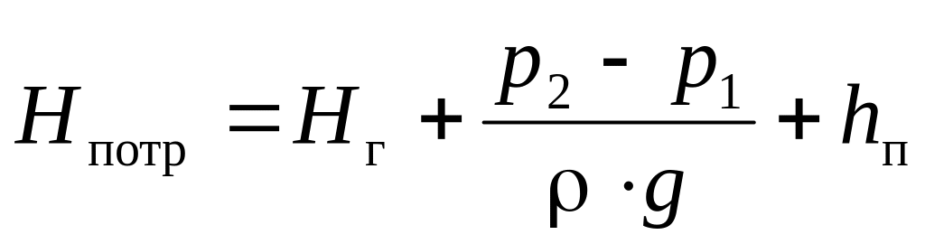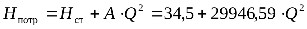 Таким образом, потребный напор при разных производительностях насоса может быть определен как: