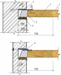 При появлении темных полос на потолке верхнего этажа, которые свидетельствуют о промерзании металлических балок перекрытия, необходимо их утеплить путем устройства вдоль балок деревянных коробов с последующей их засыпкой эффективным утеплителем с предварительным покрытием балок гидроизоляционным материалом.