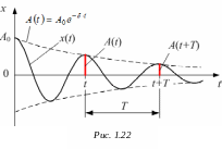 Кинематическое уравнение затухающих колебаний (рис.1.22):