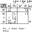 Заполнение таблицы истинности возможно на основе состояний, приведенных на рис. 1в. На рис. 2 изображена топологическая карта Карно - Вейча для выхода а. Исходная переключательная функция при этом имеет следующий вид:
