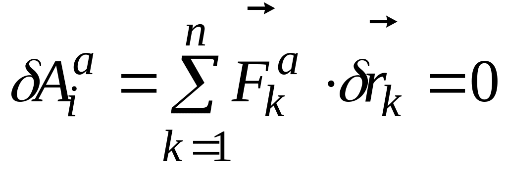 Условия равновесия механической системы дает принцип возможных перемещений: в случае равенства нулю суммы работ активных (задаваемых) сил на любом возможном перемещении система с идеальными связями находится в равновесии, т.е.