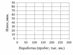 Задание: определить показатели работоспособности шатунных подшипников двигателя КамАЗ – 740. Критерием предельного состояния шатунного подшипника является зазор. Величина зазора определяется суммарным износом деталей подшипника – шейки коленчатого вала, верхнего и нижнего вкладышей. Пример исходных данных задания приведён в таблице 6, в которой даны парные значения пробега автомобилей и износа деталей.