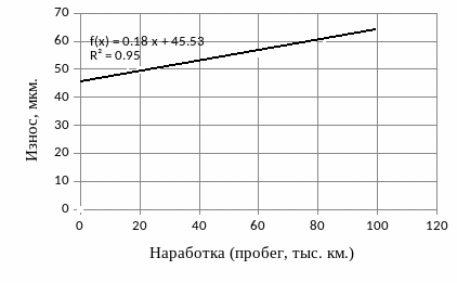 Для практических целей важным является зона, в которой величины износа приближаются к допустимым значениям. Поэтому, чтобы не усложнять функцию модели, зону приработки можно исключить из анализа. Для этого нужно определить величину износа к моменту окончания приработки.