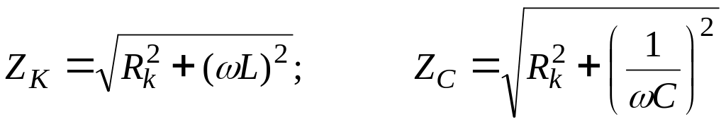 Полное сопротивление конденсатора и катушки как функции от частоты определяется соотношением: