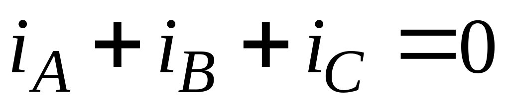 Ток в нулевом проводе равен геометрической сумме фазных токов. При симметричной нагрузке ток в нулевом проводе равен нулю.