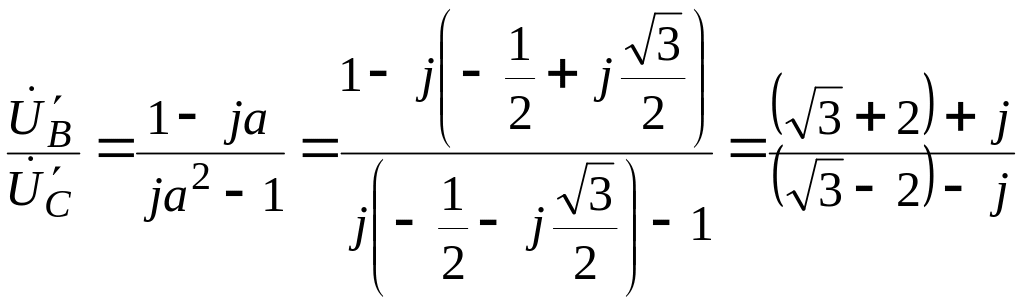 Отношение комплексов напряжений на лампах, включенных в фазы B и C: