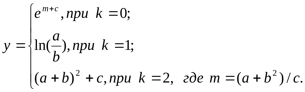 7. Даны три целых положительных числа a, b, c. Найти остаток к от деления на 3 величины m; вычислить значение функции