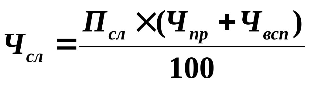 где Пвсп - доля вспомогательных рабочих , Пвсп = 10-30%.