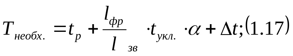 В технологических процессах tр, tукл и t обычно имеют резерв времени или различные значения в зависимости от конкрктных условий; - определяется по формуле 1.18, используя 17, 18.