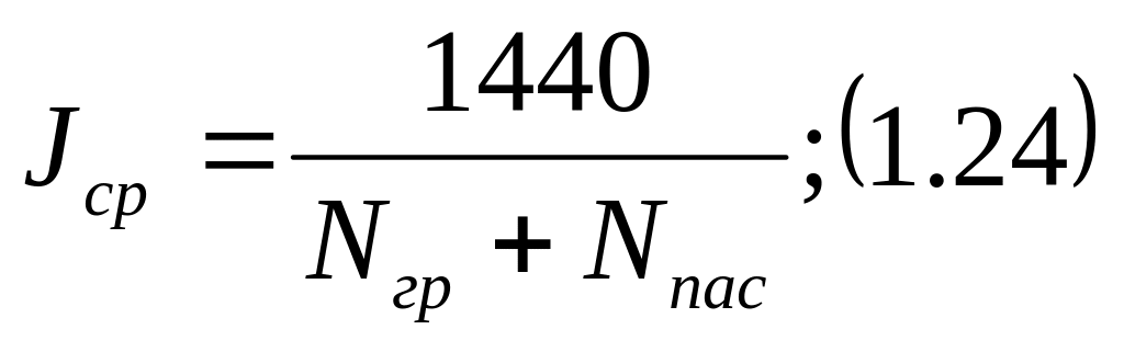 Где: Jср – средний интервал между поездами при среднем количестве поездов в 1 час одного направления для нормального движения определяется: