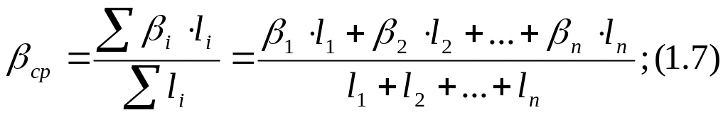 li – знаменатель (протяжение кривых0, дано по заданию или берется из технического паспорта дистанции пути. При этом следует учесть, что есть прямые участки пути, которые равны разнице между длиной направления и суммой длин кривых на этом направлении. Значения доп берутся из табл.1.9; средний удельный износ βср вычисляется по формуле (1.7); расчетный тоннаж Тр. – по формуле (1.5).