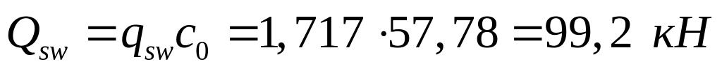 с0 ≤ 2h0 = 2·35=70 см; принимаем в дальнейший расчет значение наиболее короткой проекции наклонной трещины с = с0 = 57,78 см.