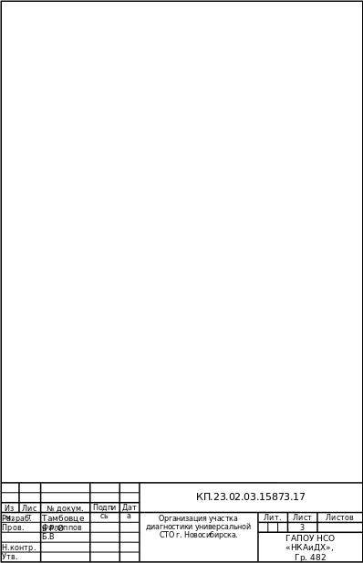 Целью дипломного проекта является разработка проекта участка диагностики универсальной СТО г. Новосибирск.