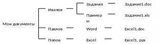16. Дано дерево файловой структуры, расположенной на диске D:. Укажите полное имя файла, сохраненного в табличном процессоре Excel.