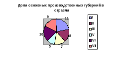 Доли (%) регионов и центров в стоимости производства отраслей |