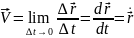 Предельное значение соотношения (6) при стремящемся к нулю интервале времени t называется скоростью точки в данный момент времени (вектором мгновенной скорости):