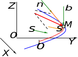 Скалярное произведение двух, отличных от нуля, векторов равно нулю, если они перпендикулярны. Таким образом, вектор лежит в соприкасающейся плоскости, направлен в сторону вогнутости траектории и перпендикулярен к касательной, т.е. он направлен по главной нормали.