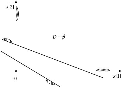 Пересечение нескольких полуплоскостей образует множество допустимых решений D, представляющее собой выпуклый многогранник, ограниченный прямыми. Несложно себе представить, что в задаче с тремя переменными допустимое множество в общем случае будет не плоским, а объемным выпуклым многогранным множеством, ограниченным плоскостями. Строго показано, что в n-мерном случае множество D также представляет собой выпуклое многогранное множество, ограниченное гиперплоскостями.