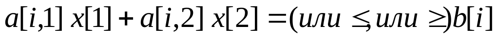 Графическое отображение отдельного ограничения – прямой линией, для неравенств – со штриховкой наложенной в сторону полуплоскости, где неравенство выполняется.