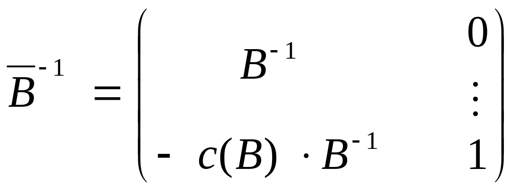 - B-1 - обратная по отношению к В матрица (обратная базисная матрица), в которой