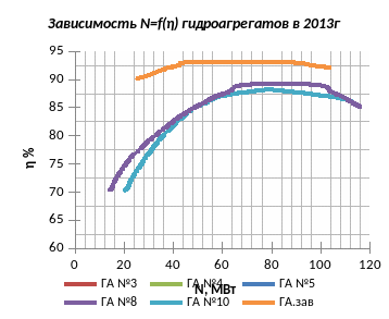 Анализ изменчивости энергетических характеристик ГА на примере рабочих характеристик ГА Воткинской ГЭС по данным заводской характеристики и характеристик, полученных путём натурных испытаний в 1996 и 2013 г.г