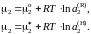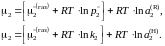 Выражения в квадратных скобках для данного раствора зависят только от температуры, являются величинами постоянными при заданной температуре и определяют химический потенциал компонента в состоянии с активностью а2 = 1 (стандартное состояние). Таким образом,