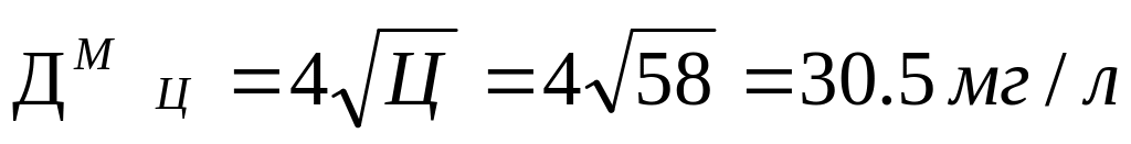 Для зимы: ДфлМ=0,45мг/л, ДфлЦ=0,2мг/л, ( принимаем 0,45 мг/л)