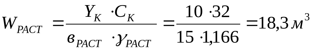 Ёмкость одного расходного бака – 12,17 м3, строительные размеры в плане 3х6 м, высота 1 м (высота слоя раствора 0,63 м).