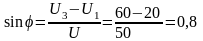 2. Углы сдвига фаз в ветвях находим по синусам углов во избежание потери знака угла:
