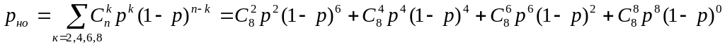 Вероятность необнаружения ошибки при декодировании с одной проверкой на четность при условии, что мы ничего не исправляем, равна: