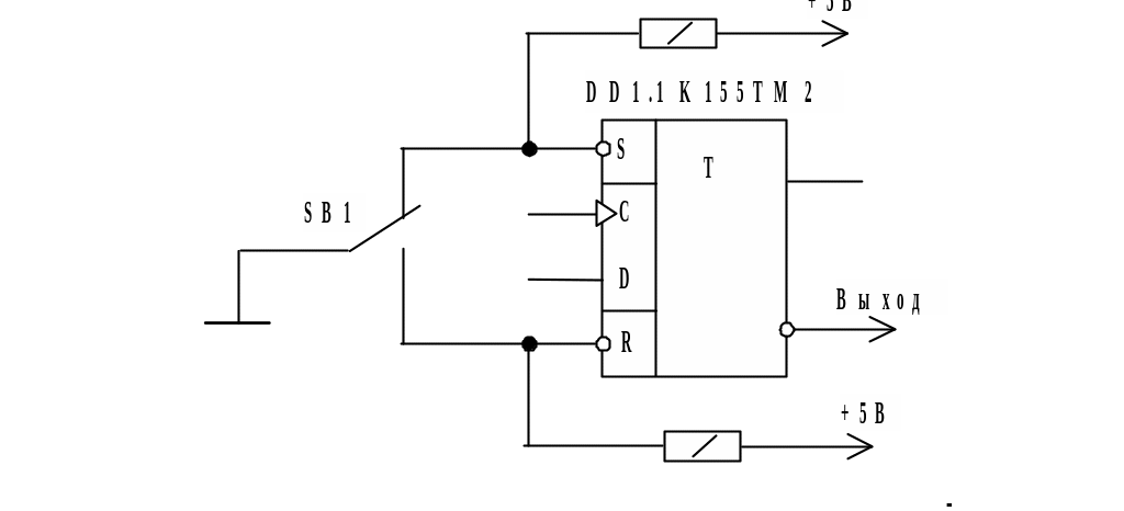 Для устранения дребезга в получаемом сигнале на выходе контактной пары устанавливают специальные формирователи. Пример такого формирователя основанного на принципе непосредственной установки RS-триггера приведён на рис. 4.2..
