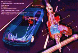 Усилитель руля является вспомогательным устройством для вращения рулевого колеса. Различают несколько типов усилителей руля. Это гидроусилитель, гидроэлектроусилитель, электроусилитель и пневмоусилитель. Гидроусилитель состоит из гидравлического насоса, в действие который приводит двигатель, системы шлангов высокого давления, и бачка для жидкости. Корпус рейки выполнен герметически, так как в нем находится жидкость гидроусилителя. Принцип действия гидроусилителя следующий: насос нагнетает давление в системе, но если руль стоит на месте, то насос просто создает циркуляцию жидкости. Стоит только водителю начать поворачивать руль, как перекрывается циркуляция, и жидкость начинает давить на рейку, «помогая» водителю. Давление направлено в ту сторону, в которую вращается «баранка».