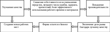 Иллюстрацией этой современной идеи может служить «Цепная реакция» Деминга (Э. Деминг – американский ученный, автор книг «Качество, производительность, конкурентоспособность», «Выход из кризиса» и др.)(см. Рисунок 15).