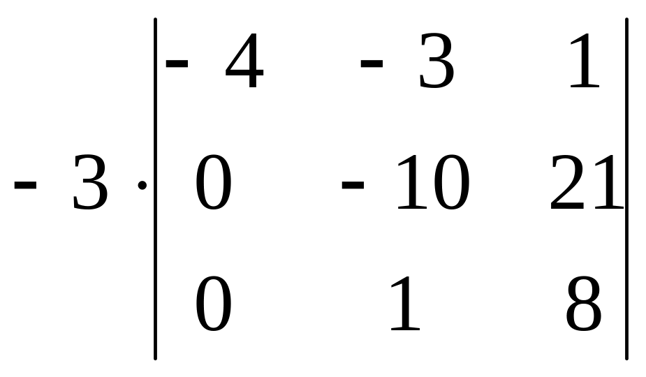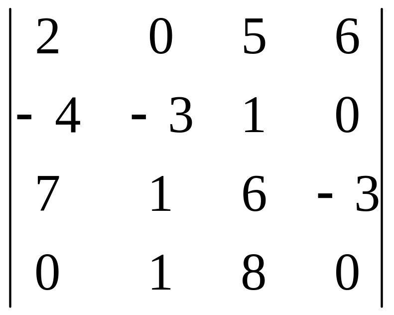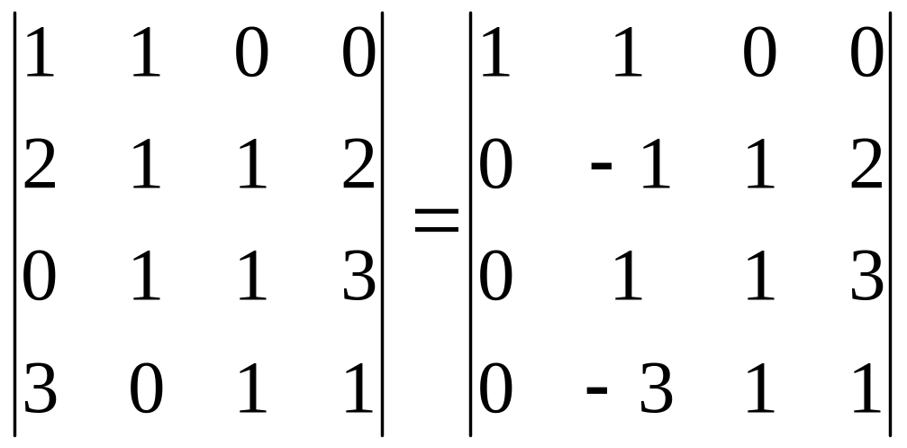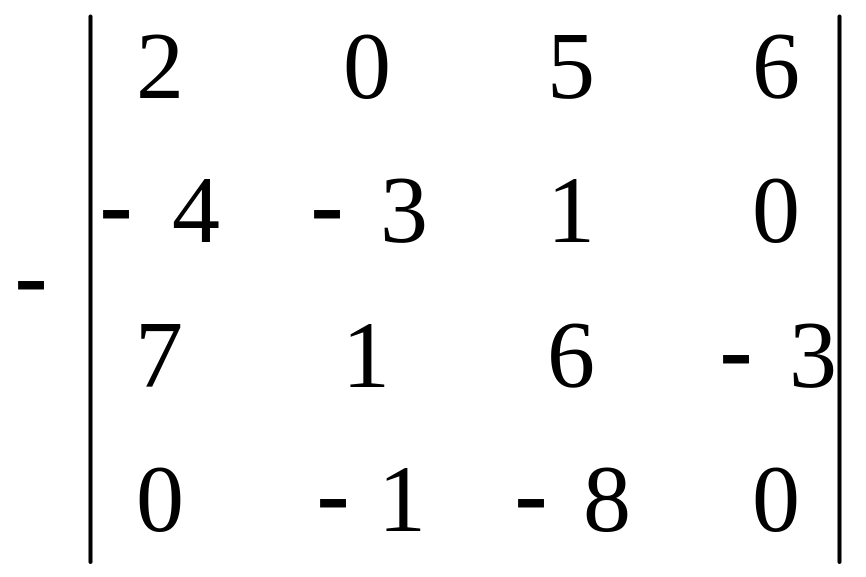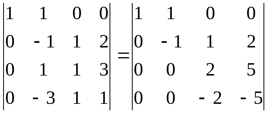 Очевидно, что последние 2 минора 3-го порядка вычислять не надо, так как они умножаются на 0. Осталось вычислить два минора 3 порядка, то есть мы свели определитель 4 порядка к определителям 3 порядка.
