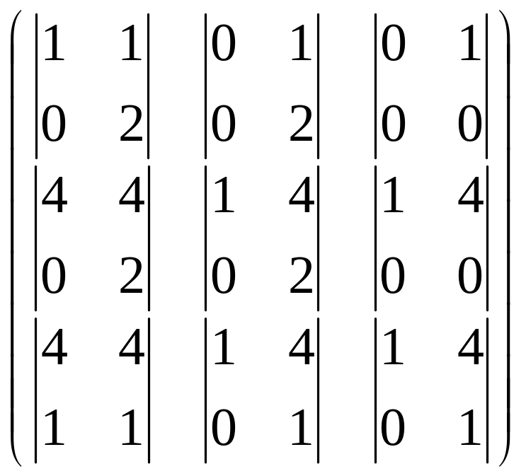 Найдём матрицу из дополняющих миноров к каждой из 9 клеток.