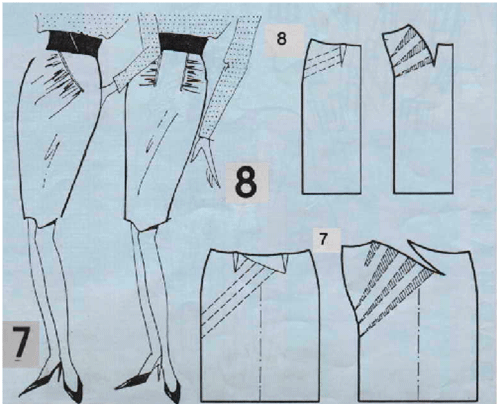 - •21. Если линия кокетки заднего полотнища юбки расположена ниже конца вытачки, то вытачку