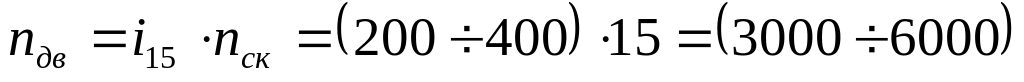 Тоді з (1) діапазон обертів вала двигуна буде: