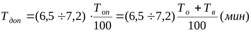 Тдоп – дополнительное время (время на обслуживание рабочего места, перерыв на отдых и т.д.) определяется в пределах (6,5-7,2%) от оперативного времени