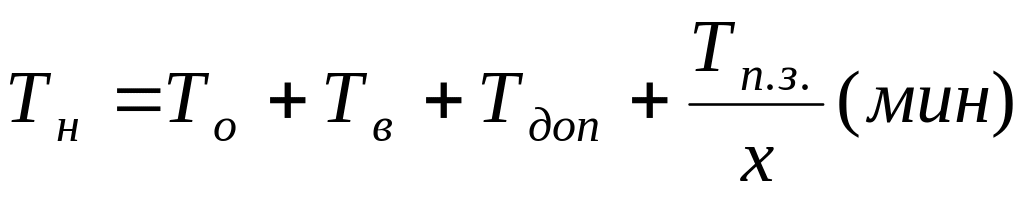 где Тп.з. – подготовительно-заключительное время (время на получение задания, ознакомление с чертежом, доставку детали, наладку инструмента и т.д.), определяется по таблицам. (8.190);
