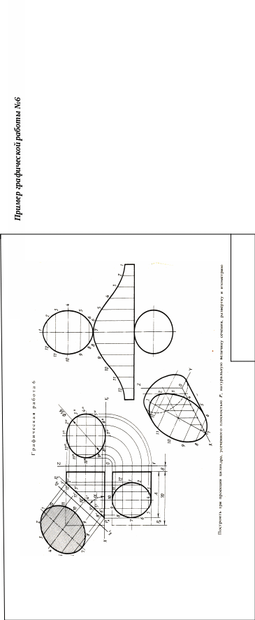 Строим горизонтальную проекцию среза , определив положение точек пересечения 1,2,3,4,5,6