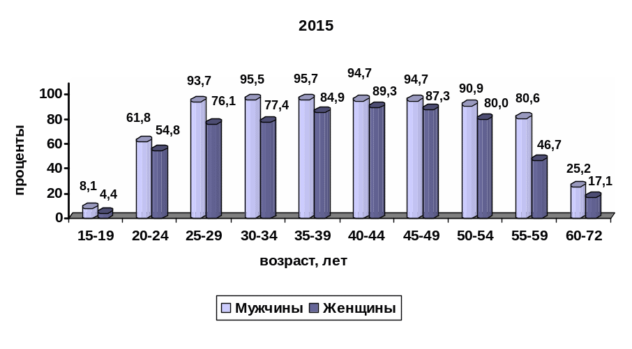 - •1.9. Уровень участия в рабочей силе мужчин и женщин по возрастным группам