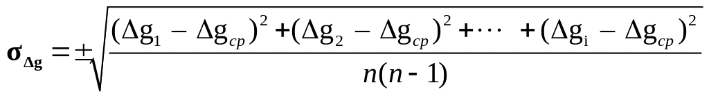 Среднее квадратичное отклонение единичного измерения от среднего значения приращения силы тяжести вычисляется по формуле: