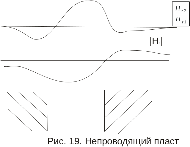 График |Нz| имеет вид несимметричного максимума или минимума в зависимости от того, располагается источник поля над непроводящим или проводящим пластом. Кривые характеризуются соответствующим расположением экстремумов.